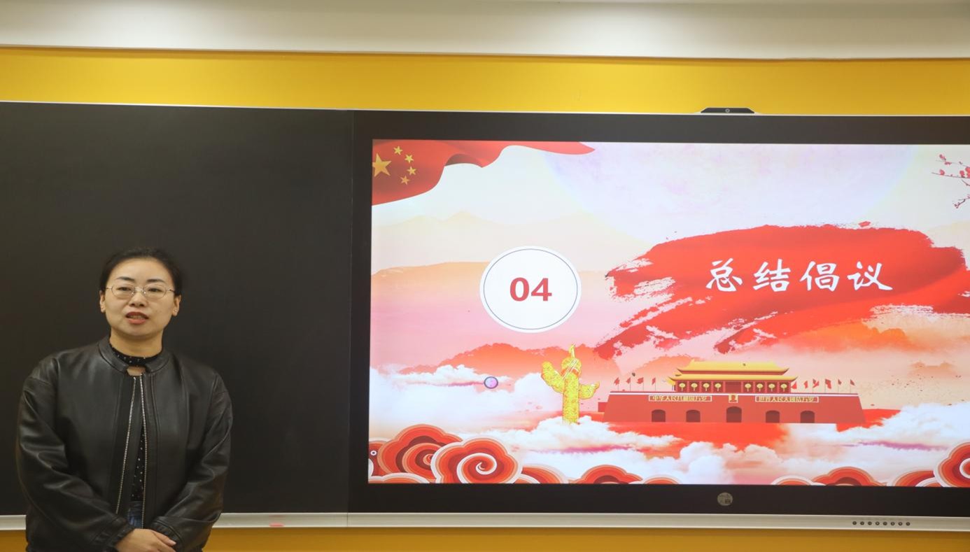 班会进入尾声,正处级组织员林静总结发言,强调铸牢中华民族共同体意识不仅是理论认知,更是行动自觉,鼓励同学们将民族团结融入日常学习生活,争做新时代民族团结的传播者与践行者。