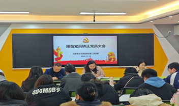 本网讯,为加强党员队伍建设,永葆党组织的生机与活力,2025年11月24日上午,马克思主义学院学生第二党支部在学院智慧教室召开党员大会,讨论卢兰梅等9名预备党员的转正问题。会议由党支部书记张静同志主持,支委会成员王天桥同志、施承成同志及全体党员参加会议。