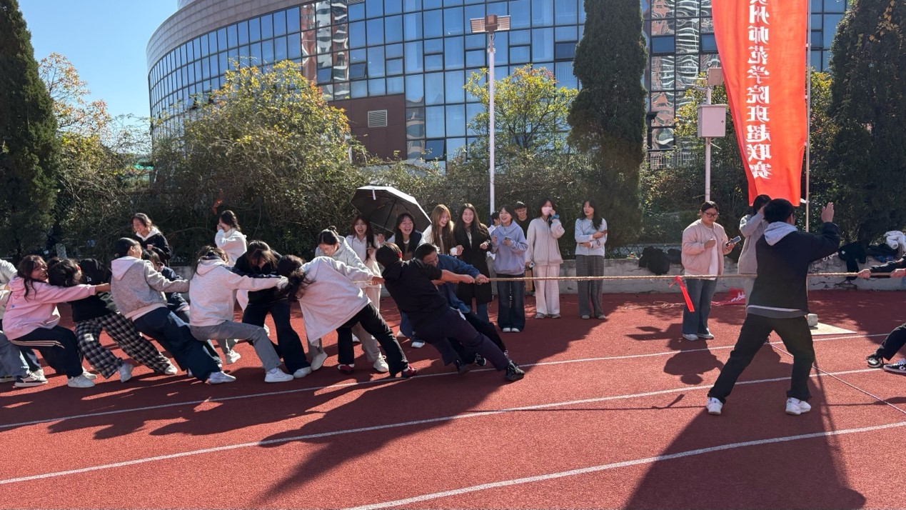 活动当天,阳光和煦,场地内同学们活力四射。拔河比赛作为首项活动,率先点燃全场激情。参赛队员们紧握长绳,铆足干劲,心往一处想,劲往一处使。在充满趣味与挑战的“三人四足”项目中,各组搭档默契配合,相互扶持,充分体现了信任与协作的重要性;趣味保龄球项目则带来了更多欢笑,同学们在尝试与挑战中体验着别样的运动乐趣。将目光转向乒乓球赛场,同学们全神贯注、眼随球动,巧妙运用搓球、挑打等多种技巧,整个比赛精彩纷呈。最后是羽毛球比赛现场,球场上白羽纷飞,同学们挥拍灵活、攻守有度。此外,“齐心协力”、跳长绳等项目也各具特色,精彩纷呈。同学们掌声阵阵,加油声此起彼伏。