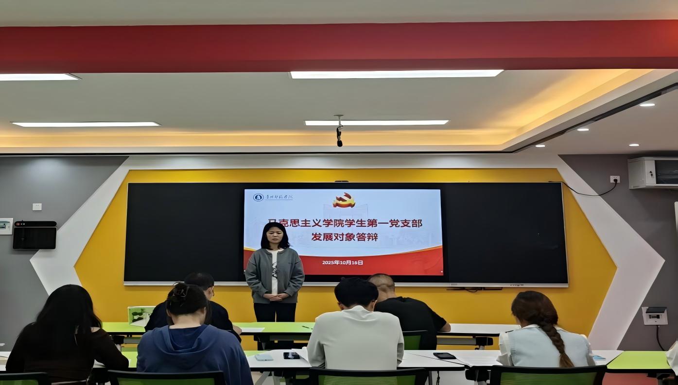 为深入贯彻落实全面从严治党要求,严把党员发展“入口关”,切实提升党员发展质量,2025年10月16日,马克思主义学院学生第一党支部在学院智慧教室开展第19期入党发展对象答辩活动。本次活动由学生第一党支部书记秦红平主持,支部组织委员王玉清、纪检委员张玉胜共同参会,答辩活动以“线上+线下”融合模式有序推进。