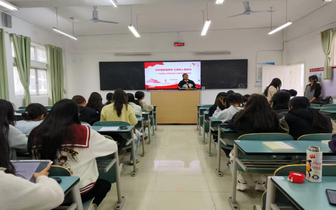 为深入学习贯彻习近平新时代中国特色社会主义思想,引导青年党员筑牢信仰之基,强化责任担当,马克思主义学院学生第二党支部于2025年10月20日在明辨楼508教室组织召开“深学细悟强思想 立德树人勇担当”主题党日活动。活动由党支部书记张静主持,支部全体党员参与。