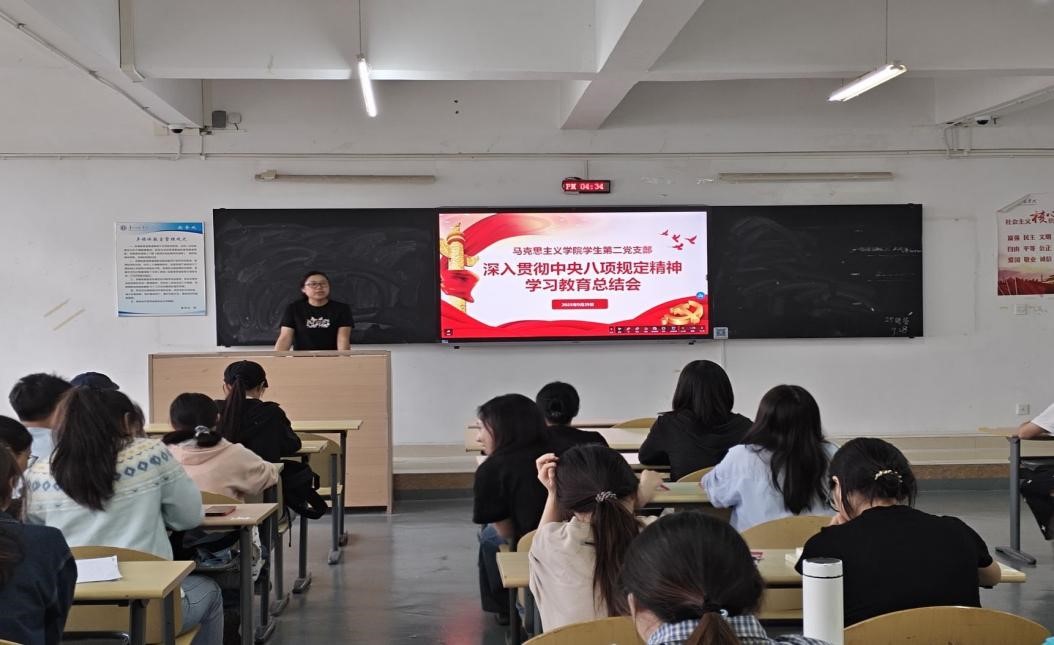为全面总结深入贯彻中央八项规定精神学习教育开展情况,进一步巩固拓展学习教育成果,切实做好成果转化工作,2025年9月29日下午,马克思主义学院学生第二党支部在明德楼518室组织召开深入贯彻中央八项规定精神学习教育总结会。会议由党支部书记张静同志主持并作总结讲话,支部全体党员参加会议。