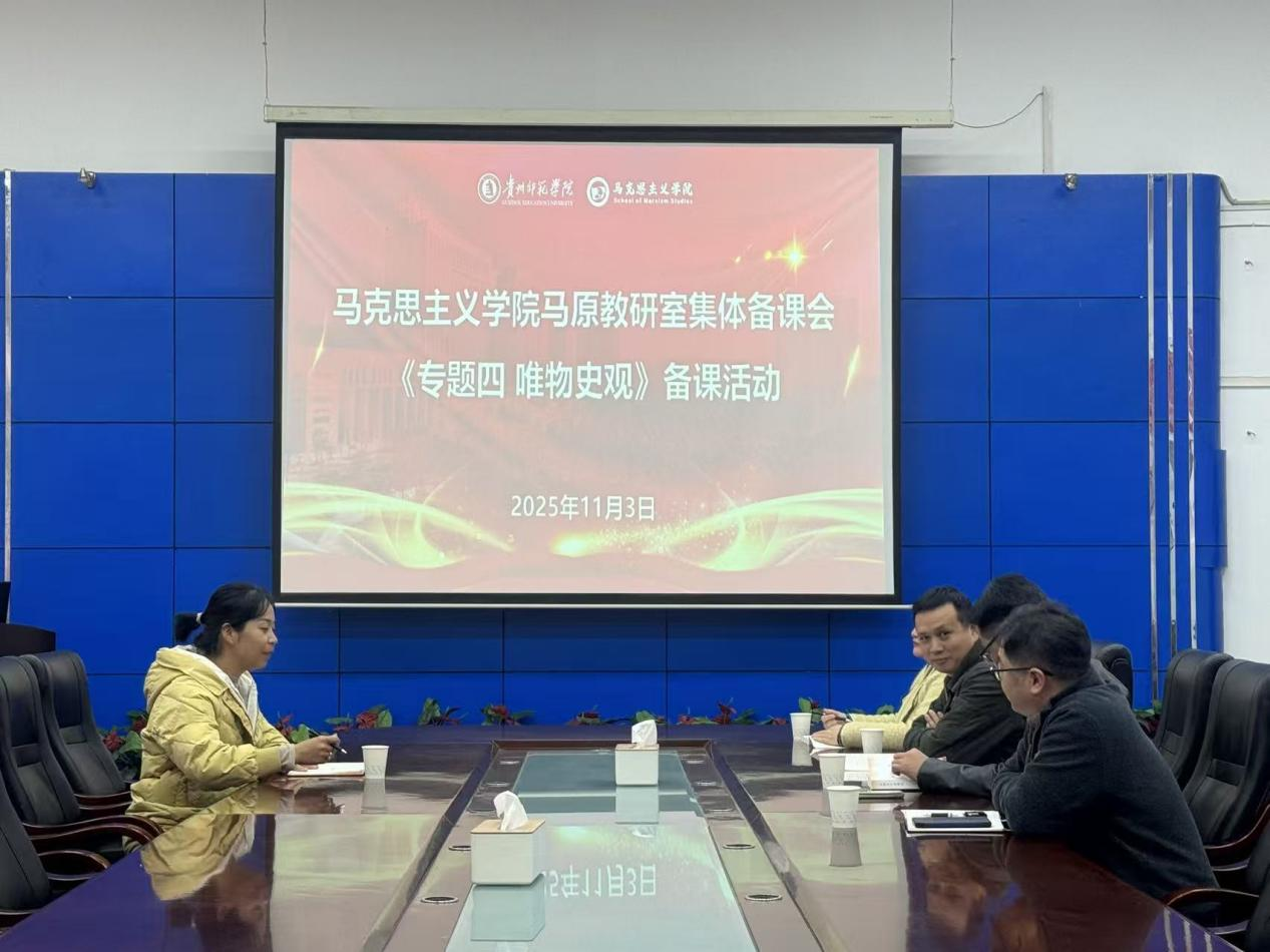 为深入提升《马克思主义基本原理》课程教学质量,深刻把握唯物史观的理论精髓与时代价值,我院原理教研室于2025年11月3日在学院会议室围绕“专题四之唯物史观”成功举办了本学期第二次集体备课会。本次会议由教研室主任王玉清老师主持,教研室全体教师参加。