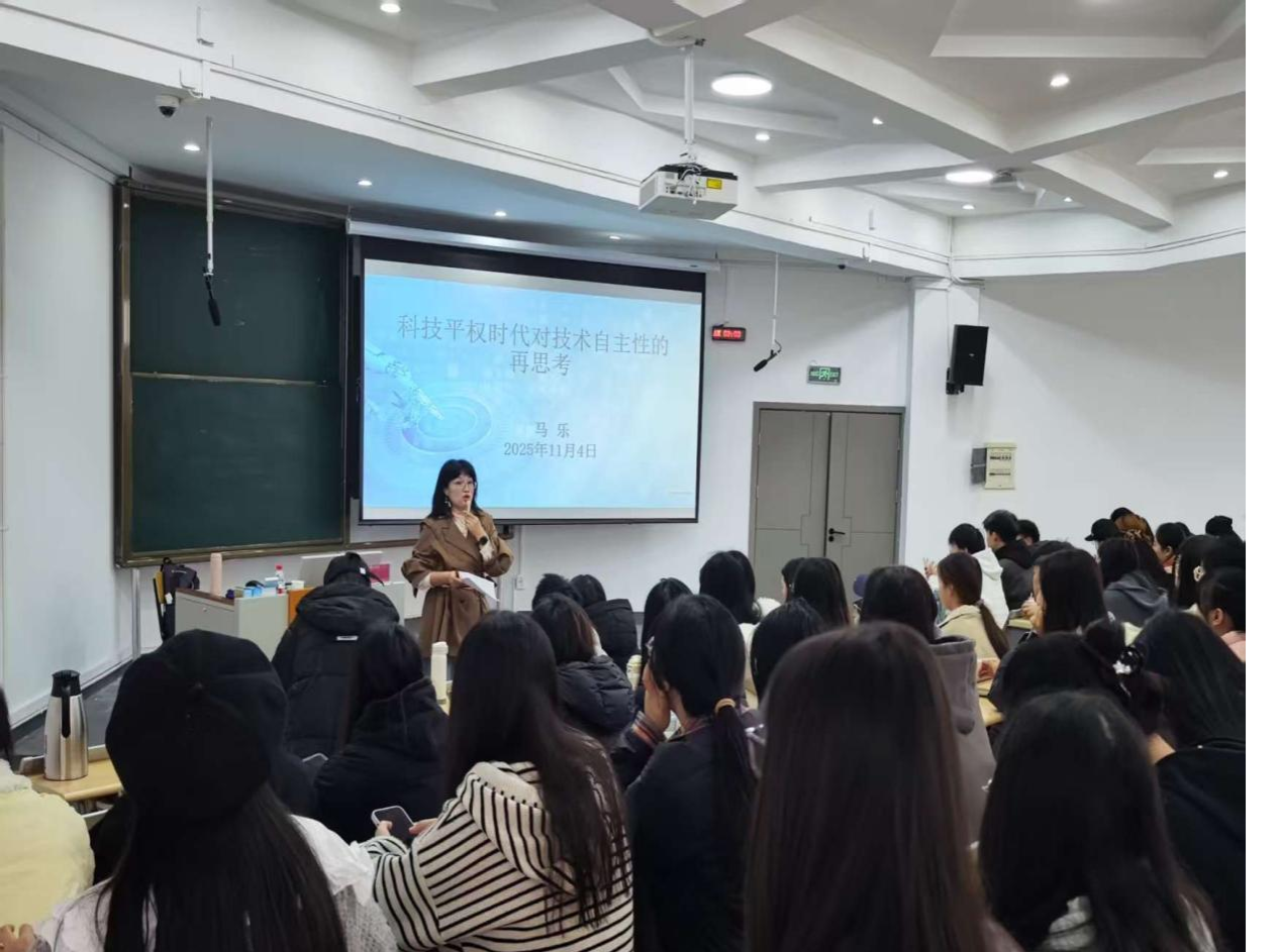 11月4日上午,马乐老师以《科技平权时代对技术自主性的再思考》为主题开讲。她指出,科技资源长期为权力阶层垄断,工业化在提升效率的同时也导致“技术异化”。技术具有自主性发展逻辑,在算法推荐、自动驾驶、基因编辑等领域常出现人类意志难以完全控制的情况。她认为,人工智能推动了科技平权,但也带来失业等挑战,应通过制度规范与伦理引导,构建人与技术的共生关系。