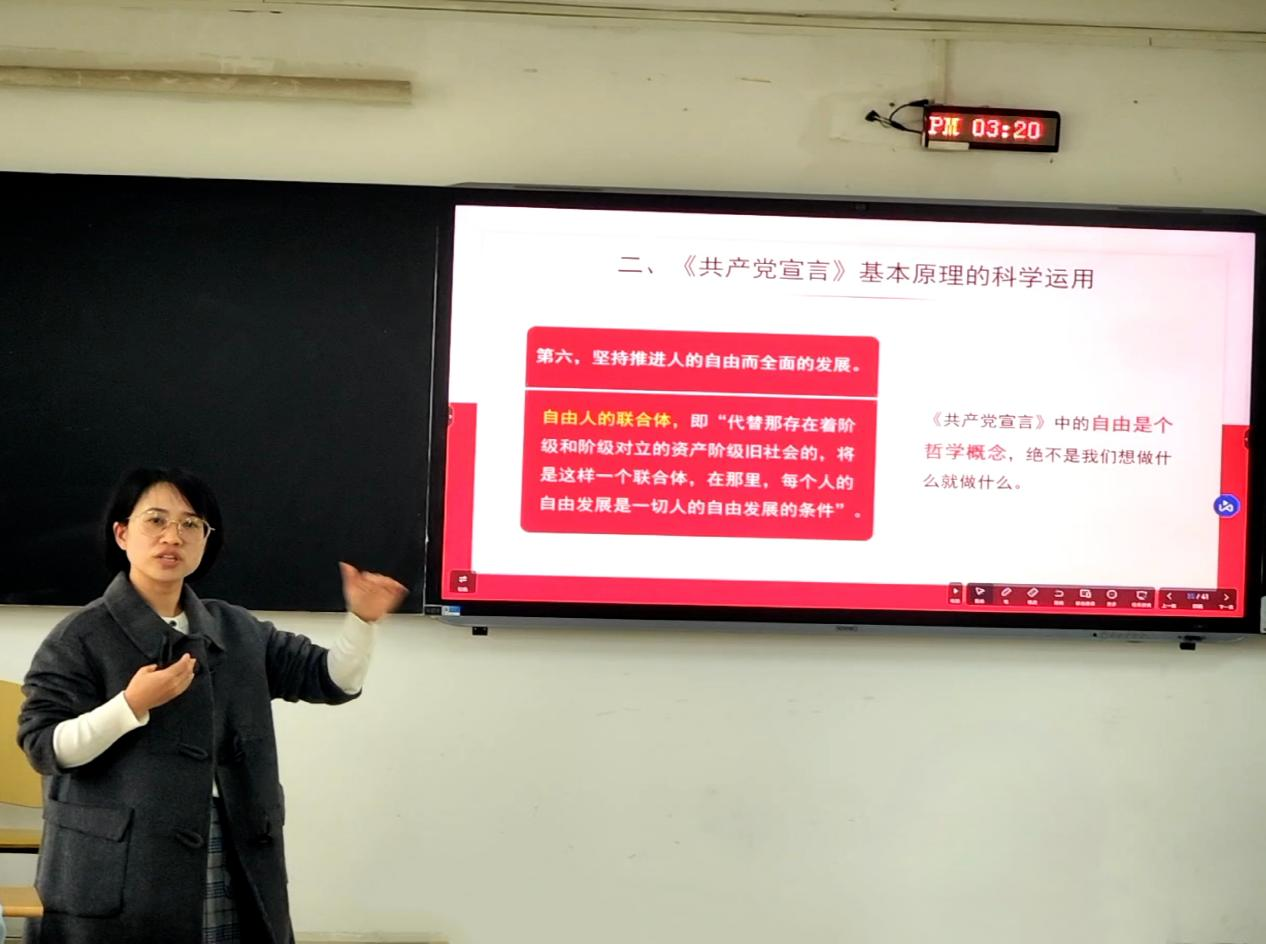 11月10日下午,施承成老师带来《〈共产党宣言〉与新时代青年信仰》讲座。她以《共产党宣言》为核心展开,点明这部1848年的经典以历史唯物主义阐明阶级斗争规律,既是无产阶级革命的科学指南,也指导着中国共产党从弱小走向壮大。她强调,新时代青年需要从《共产党宣言》中锚定信仰——领会其“为人类解放而斗争”的精神内核,将这份跨越时代的真理,转化为学业实践里的责任与行动,以信仰驱动个人成长、助力社会进步。