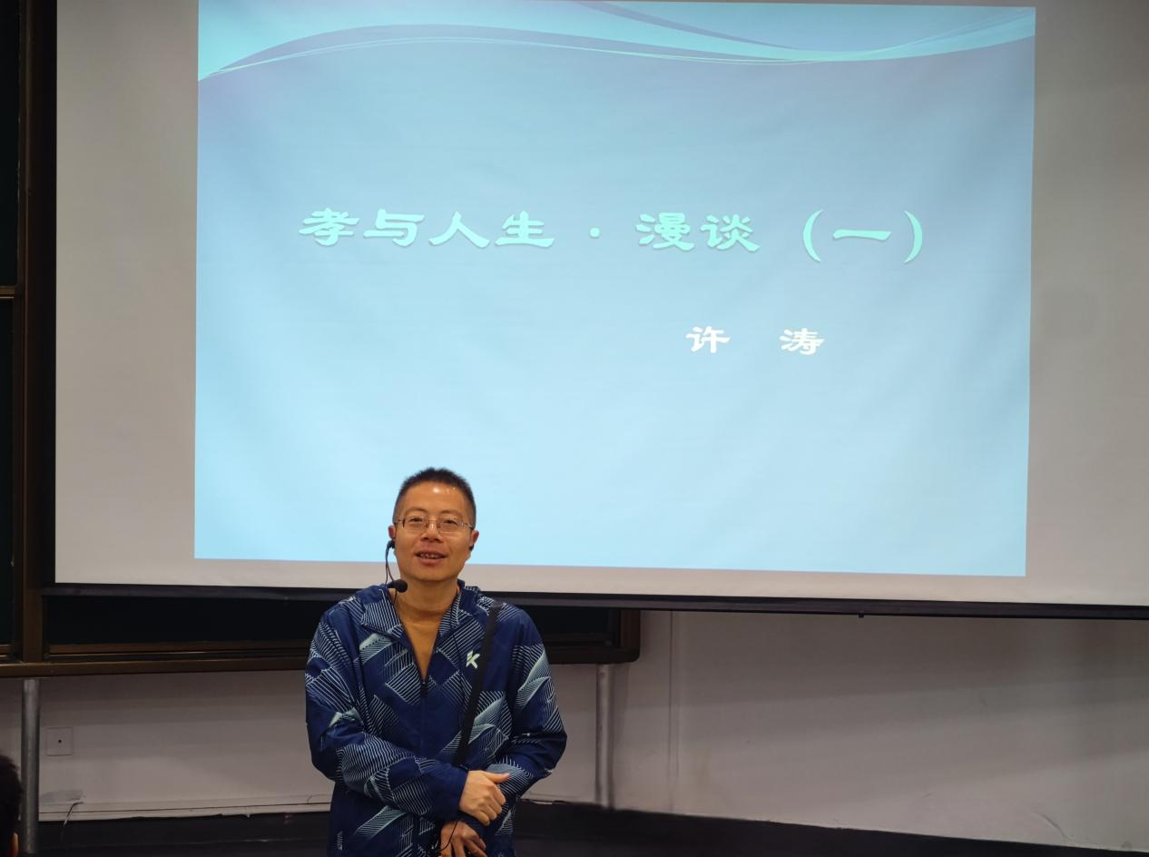 11月3日下午,许涛老师在明德楼423开展《孝与人生·漫谈(一)》专题讲座。他从跨文化视角指出,“孝”是中国特有的综合性伦理,西方无直接对应概念;通过“鸦反哺、羊跪乳”与黑猩猩无养老行为的对比,说明孝为人类独有。他介绍了孝的“经验说”与“先验说”。许涛老师认为孝兼具先天理性与后天经验属性,既具有人类道德普遍性,也包容文化差异。