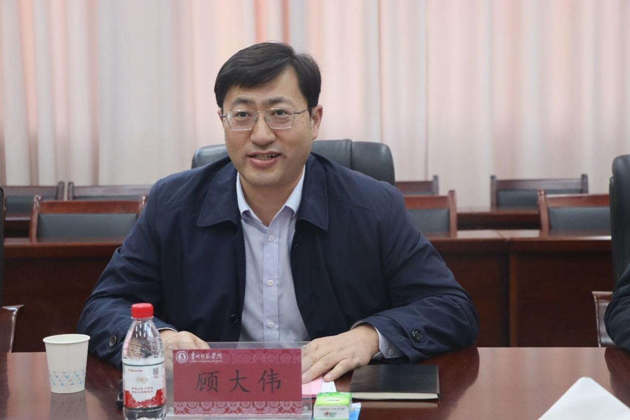 会上,金凤院长详细介绍了学院办学特色,围绕学科布局、师资队伍、人才培养模式及教学科研成果等核心内容,全面展现了学院发展概况,为双方深度交流筑牢基础。山东师范大学马克思主义学部党委书记顾大伟在讲话中分享了该校马克思主义学部在党建引领学科发展、思政课改革创新等方面的宝贵经验,明确提出“优势互补、资源共享”的合作愿景,表达了深化校际合作、共促思政教育提质增效的诚挚意愿。贵州师范学院党委常委、副校长兼马克思主义学院党委书记陈真波对考察团的到来表示欢迎,强调校际交流是推动思政教育创新发展的重要途径,希望双方以合作为起点,实现资源共享、优势互补,助力贵州师范学院马克思主义学院高质量发展。校党委副书记高勇在讲话中强调,期望两校在各个领域构建紧密的联系,进一步细化合作举措、拓展合作维度,切实推动协同发展之路走得更加坚实、更加长远,携手共谱校际合作崭新篇章。
