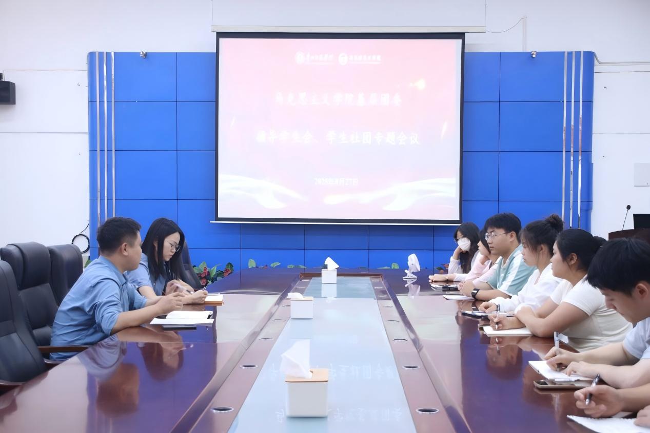 为保障新学期团学工作有序推进、明晰工作方向、凝聚干部队伍力量,2025年8月27日,马克思主义学院团委在学院会议室召开2025年秋季学期联系指导学生会与学生社团工作专题会议。学院团委负责老师李佩桓、刘金群,以及团委、学生会和社团全体干部参会。