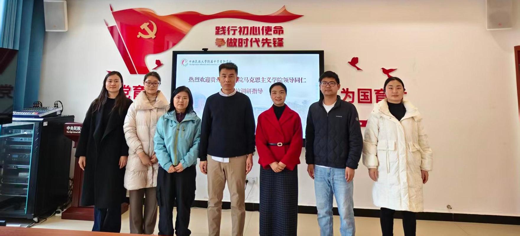 为深入推进大中小学思政课一体化改革创新,探索构建循序渐进、螺旋上升的思政育人体系,2026年1月19日,由贵州师范学院马克思主义学院楚亚萍、张培卫等骨干教师组成的专项调研组,先后前往中央民族大学附属中学、乌当区新九学校高新分校等地,开展大中小学思政课一体化建设专题调研活动。
