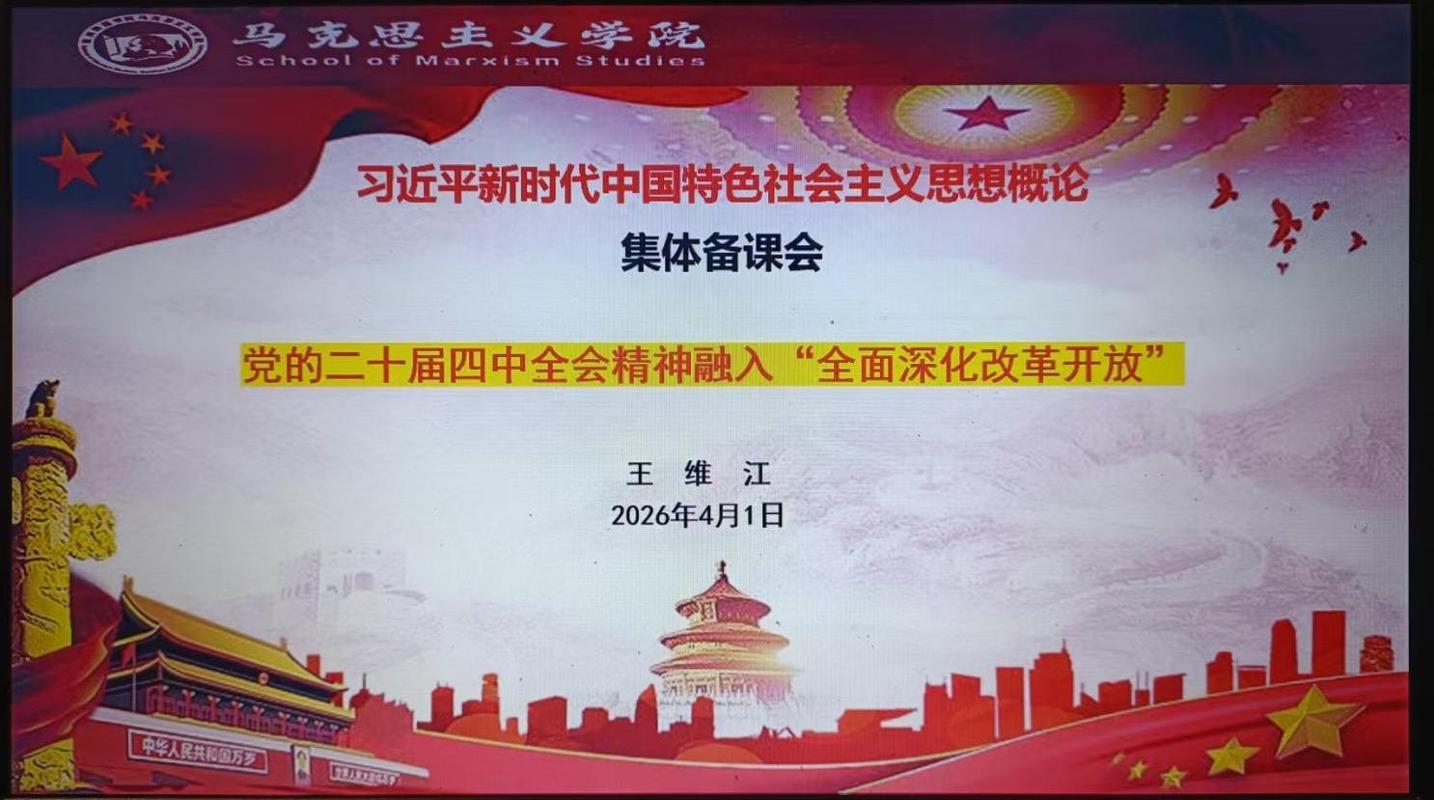 为进一步贯彻落实党的二十届四中全会精神和学校思政课质量提升年的要求,发挥教学团队的整体力量,持续提升课堂教学质量和育人效果,2026年4月1日晚,《习近平新时代中国特色社会主义思想概论》教研室通过腾讯会议组织教师开展了一次集体备课会。本次集体备课会由教研室主任王维江主持,教研室16位任课教师参会,马克思主义学院副院长陈祖召同志与会指导。